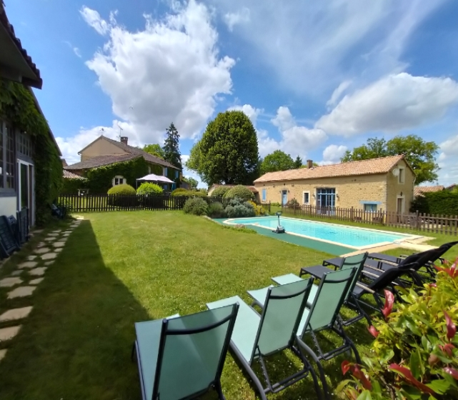 Gîte établi depuis plus de 15 ans. Trois vénérables maisons du 19ème restaurées avec soin, Séchoir à tabac, nombreuses dépendances et activités, Vieilles pierres, piscine et beau jardin Calme, confort, et authenticité, à l'écart des débordements estivaux